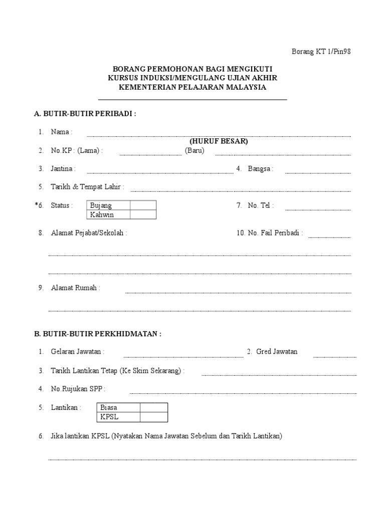 BUTIR BUTIR PERIBADI 1. Bagi jarak melebihi 240 kilometer sahaja pekeliling perbendaharaan bil. BORANG PERMOHONAN BAGI MENGIKUTI.
